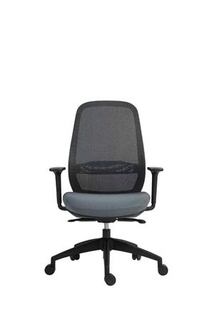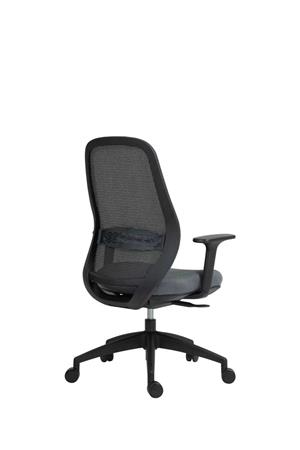 Irodai szék, karfás, fekete szövetborítás, feszített hálós háttámla, fekete lábkereszt, MAYAH "Mid Chair II", fekete