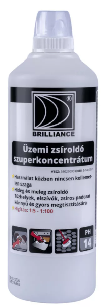 A Brilliance üzemi zsíroldó szuperkoncentrátum egy rendkívül erős és hatékony tisztítószer, amelyet professzionális használatra fejlesztettek ki. Az 1 literes kiszerelés gazdaságos és sokoldalú megoldást kínál, mivel a termék hígítva, a szennyeződés mértékétől függően használható fel.