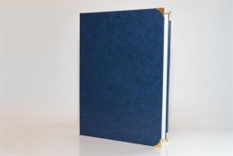 Oklevéltartó, A4, exkluzív, műbőr, 4 fém sarokkal, kék