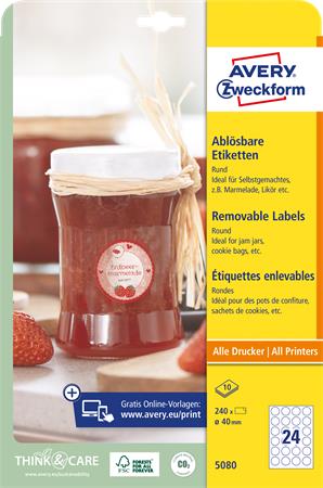 Etikett, 40 mm, kör, eltávolítható, AVERY ZWECKFORM, 240 etikett/csomag