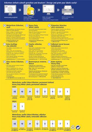 KezdőlapIrodaszerekIrodai papíráruEtikettekEtikett, 45,7x21,2 mm, poliészter, időjárásálló, AVERY ZWECKFORM, fehér, 960 etikett/csomag
