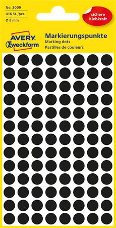 Etikett, 8 mm, kör, AVERY ZWECKFORM, fekete, 416 etikett/csomag