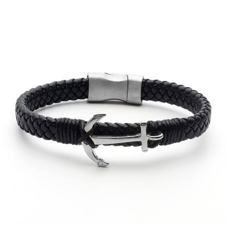 Karkötő, fekete fonott bőr, mágneszárral, ezüst színű horgonnyal, 22,5cm, ART CRYSTELLA®