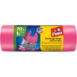 Szemeteszsák, köthető füles, illatosított, 70 l, 15 db, 62x73 cm, 16 µ, FINO "Premium handles", rózsaszín