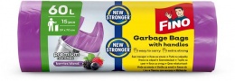 Szemeteszsák, köthető füles, illatosított, 60 l, 15 db, 59x70 cm, 16 µ, FINO "Premium handles", lila